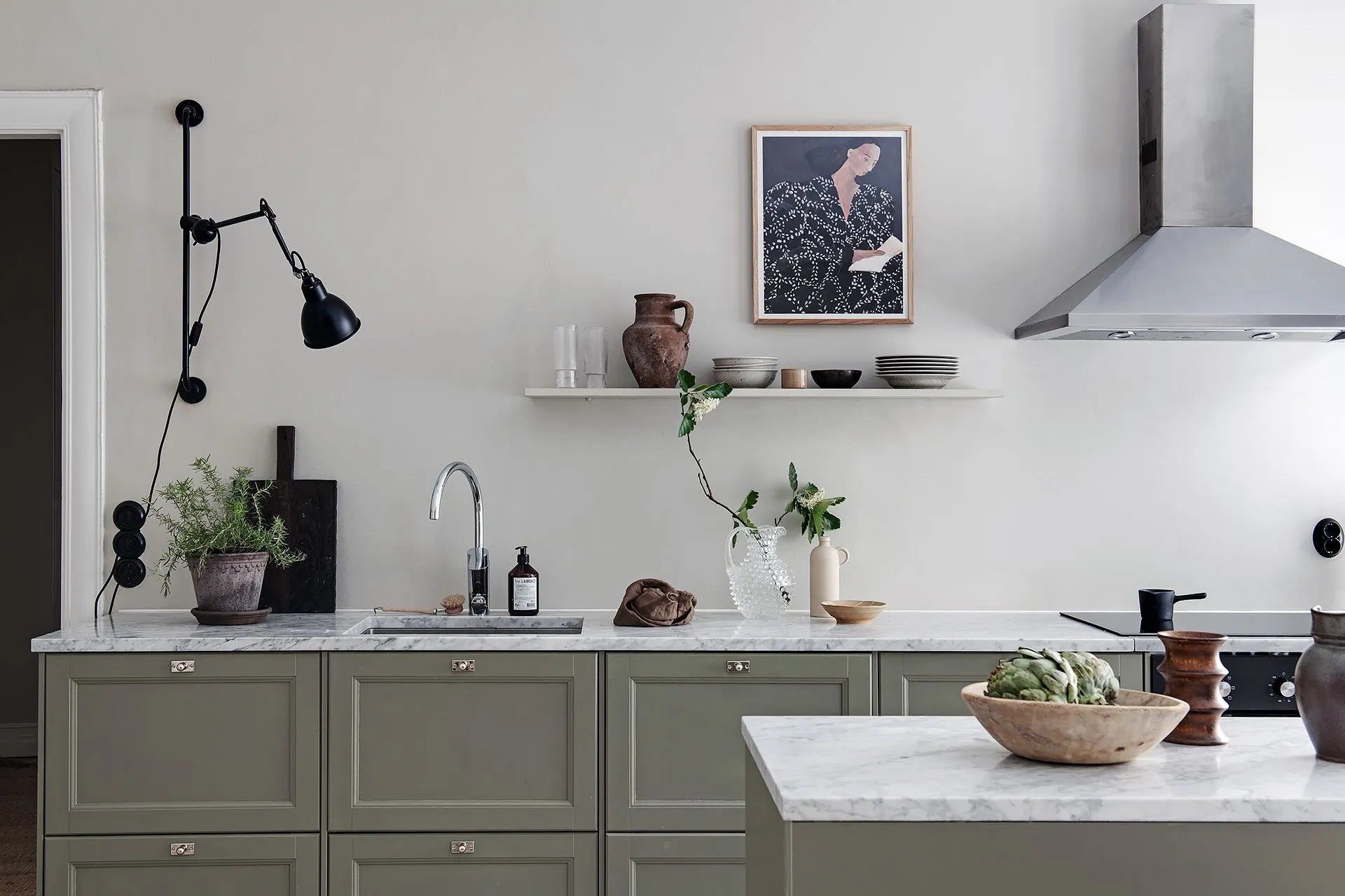 What colours should you use? Natural, earthy colours such as beige, sand and olive green are the most popular, among other things because they exude calm and harmony. And of course, the fact that a home changes with us is not the least of our concerns, so thanks to clean shapes and natural colours, you can almost always add a wilder wallpaper or a really extreme lamp or rug to completely revamp the space.